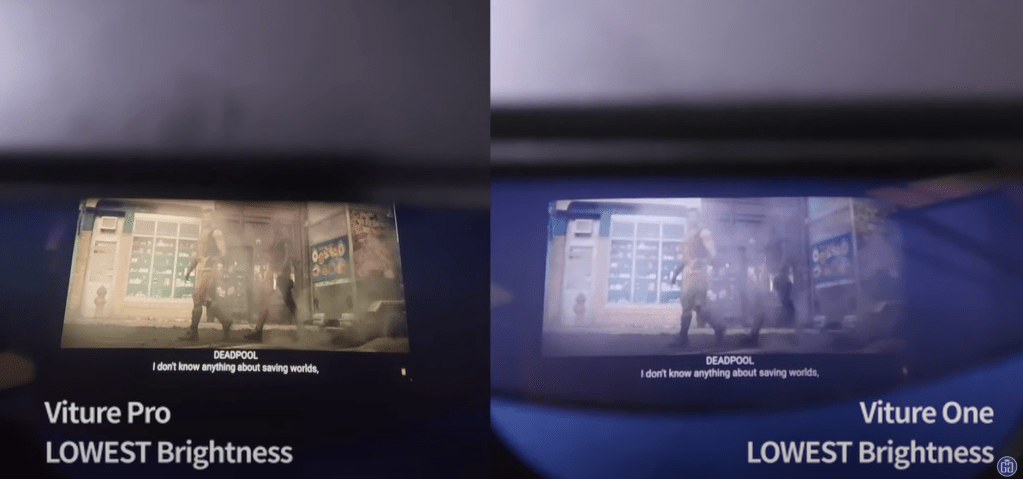 With birdbath optics and micro-OLED panels, the Pro delivers a 135-inch virtual display viewed from about 3 meters. The brightness has been improved dramatically, reaching levels that are even effective outdoors in direct sunlight. However, in extremely bright scenes, blacks can appear somewhat transparent, leading to slight contrast issues in brightly lit rooms.